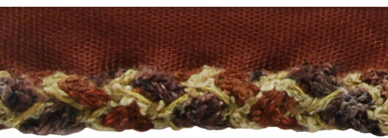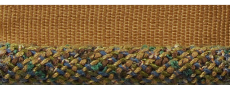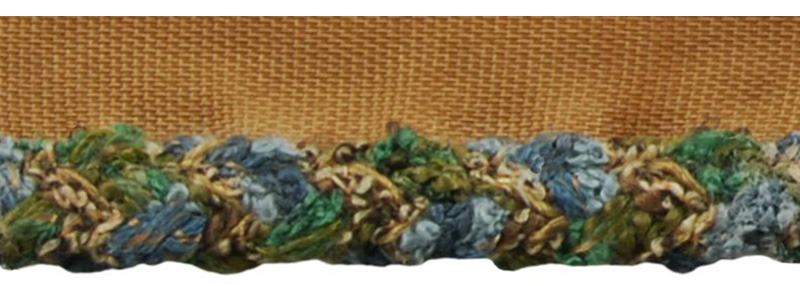 An exclusive collection which blends texture and unique trim styles that have been particularly crafted. A pom-topped hand tied tieback features a whimsical look with distinctive yarns as raffia and matte boucle lending a textural element. Similar in texture is a one-of-a-kind double-edge braid. In contrast, the clean lines of hand-stained wood bead fringes, tightly woven welted lipcords and flat jacquard tapes bring balance to the collection. Eight earth-inspired colorations range from tonal desert neutrals to dramatic mixes reminiscent of the changing seasons.